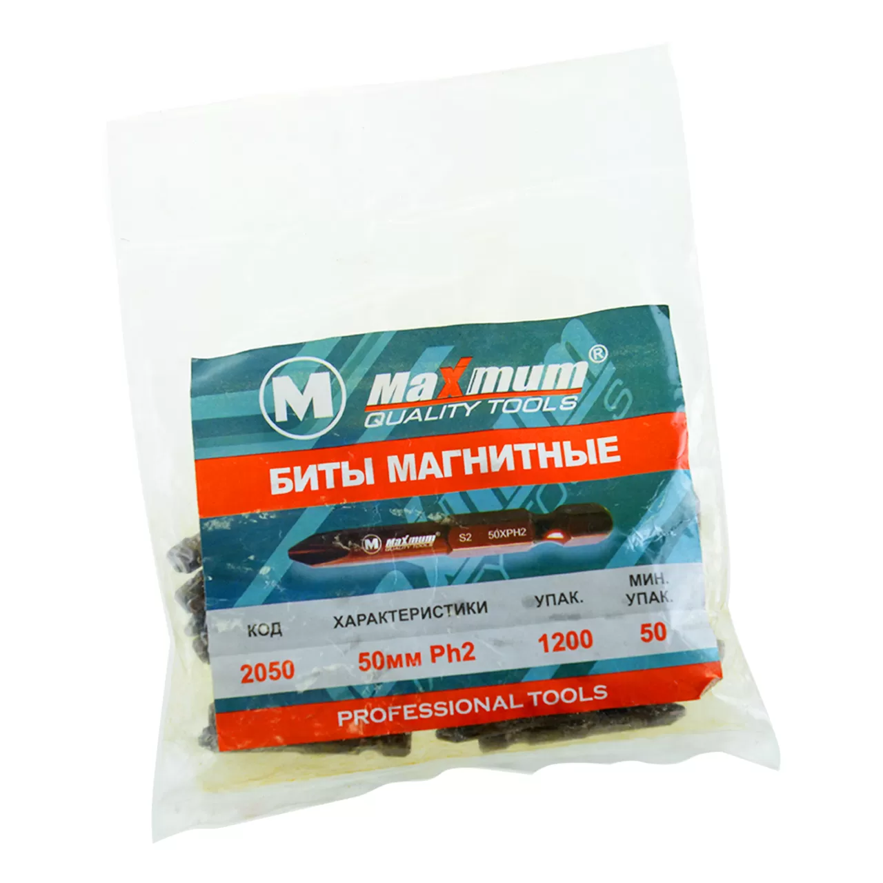 Набор бит торсионных для ударных шуруповертов PH2, 50 мм, S2, 5шт., "MAXIMUM" MX 16002