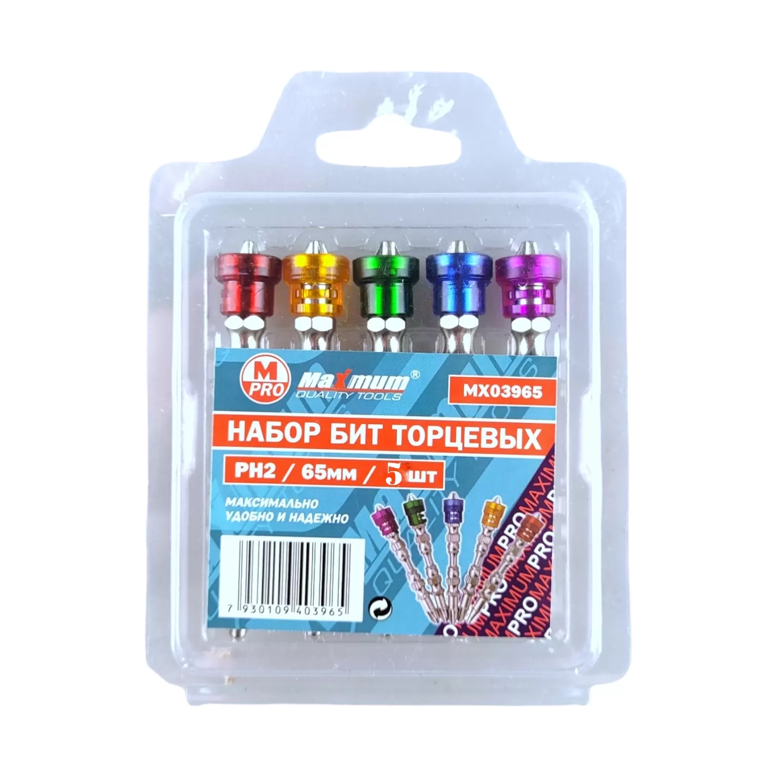 Набор бит торсионных для ударных шуруповертов PH2, 50 мм, S2, 5шт., "MAXIMUM" MX 16002